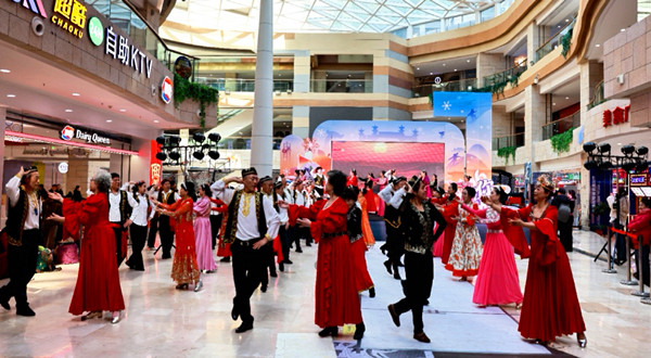 活动当天,碧乐城内人头攒动、暖意融融,处处洋溢着喜庆热烈的节日氛围。上午9:30,演出在冬日阳光舞团激情昂扬的集体舞蹈中正式拉开帷幕。舞者们身着盛装,舞步整齐、精神饱满,瞬间点燃全场气氛,生动诠释了“幸福阳光,一路暖阳”的活动意境。在近三个小时的精彩演出中,各支队伍轮番登台,共献上30个形式多样、精彩纷呈的节目:鞍山本土民乐队奏响经典民乐,旋律悠扬,韵味绵长,尽显传统艺术魅力;新疆舞团身着绚丽民族服饰,舞姿灵动、节奏明快,将新疆舞的热情与奔放展现得淋漓尽致;现代舞、新潮点帕斯、交际舞、新疆舞散跳等节目轮番上阵,动感十足,一次次将现场气氛推向高潮;集美时尚模特艺术团步履从容、身姿优雅,气场十足,尽显新时代女性的自信与风采。